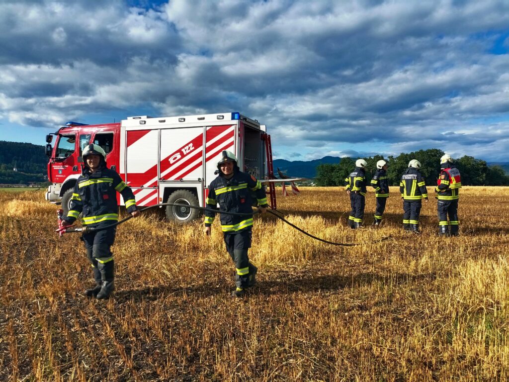 Am 09. Juli 2025 wurden die Feuerwehren St.Thomas am Zeiselberg, Ottmanach, Pischeldorf und Timenitz zum Brand eines Getreideackers nach Reigersdorf alarmiert.