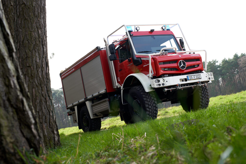 Mercedes-Benz Trucks bietet ein breites Spektrum an möglichen Lkw-Modellen für den Feuerwehreinsatz. Der Unimog ist als hochgeländegängige Variante UHE sowie als Geräteträger (UGE) prädestiniert für Einsätze in abgelegenen Gebieten. Zur Waldbrandbekämpfung, für Hochwasser-Einsätze aber auch auf engem Stadtraum ist der Unimog ein unverwüstliches Einsatzfahrzeug.