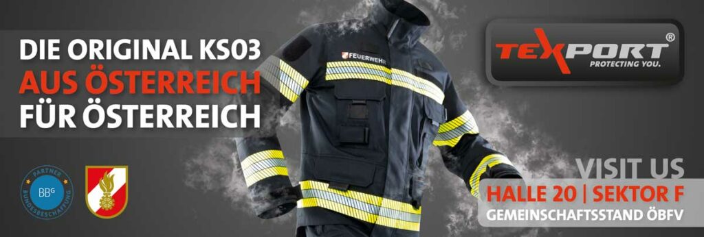 Unter anderem mit dabei: DIE ORIGINAL KS03 – AUS ÖSTERREICH FÜR ÖSTERREICH – Gewinner der österreichweiten Ausschreibung des ÖBFV. Sie vereint höchste Qualität mit den Anforderungen der neuen Bekleidungsvorschrift für Österreichs Feuerwehren. Die Richtlinie schafft ein einheitliches Erscheinungsbild und erleichtert die wirtschaftliche Beschaffung – umgesetzt in einem erstklassig verarbeiteten Einsatzanzug für technische Hilfeleistung und Brandbekämpfung im freien Gelände.