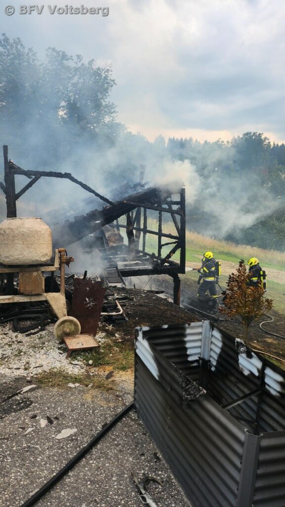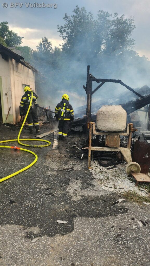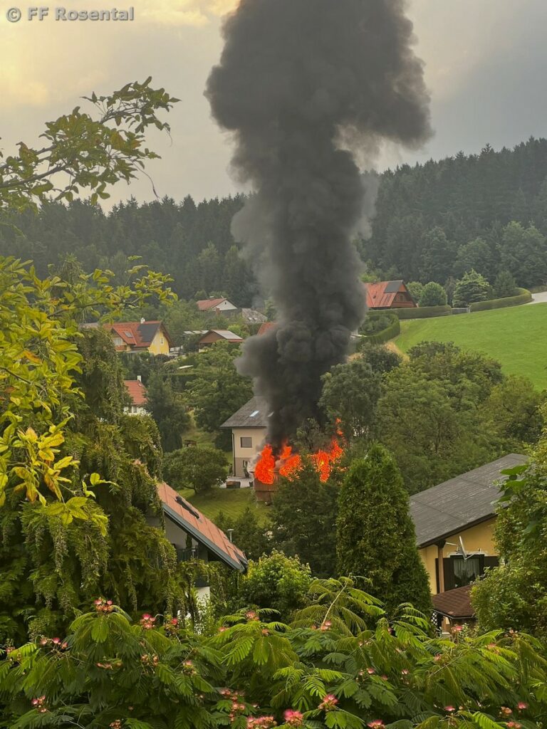 Am 10.08.2025 wurden um 18:43 Uhr die Feuerwehren Rosental, Köflach, Piber zu einem, in Vollbrand stehenden Carport nach Rosental alarmiert. Nachdem die Rauchsäule von weitem schon sichtbar war, wurde die FF Bärnbach sowie das Einsatzleitfahrzeug des BFV Voitsberg aus Mooskirchen nachalarmiert. Beim Eintreffen der ersten Einsatzkräfte stand das betroffene Carport in Vollbrand und das Feuer hatte bereits auf eine angrenzende Garage übergegriffen. Mit mehreren Löschleitungen wurde der Brand unter Kontrolle gebracht und ein Übergreifen auf das angrenzende Wohnhaus verhindert werden. Insgesamt waren vier Atemschutztrupps eingesetzt und zwei weitere Trupps waren als Reserve am Einsatzort.
