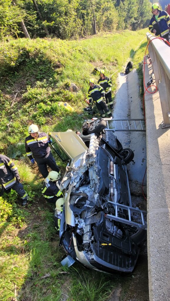 Am Sonntag, 10.08.2025 wurden die Einsatzkräfte der Freiwilligen Feuerwehr Steinhaus a. S mittels Sirenenalarm um 07:48 Uhr zu einem Verkehrsunfall mit eingeklemmter Person zur Semmering Begleitstraße gerufen. Es war eine komplexe Rettung der eingeklemmten Person nötig, da das Fahrzeug instabil und auf der Seite liegend zum Stillstand kam. Das Fahrzeug musste mit Leitern fixiert werden, währenddessen wurde die verunfallte Person von Feuerwehrsanitätern bis zum Eintreffen des Roten Kreuzes versorgt. Gemeinsam mit den Kameraden der Freiwilligen Feuerwehr Spital am Semmering, wurde die Person zum Rettungsfahrzeug transportiert, wo sie das Rote Kreuz übernahm. Für die Dauer des Einsatzes wurde die Bundesstraße durch die Polizei gesperrt. Danach wurde die Straße gereinigt, der Brandschutz abgebaut und das Fahrzeug abtransportiert.