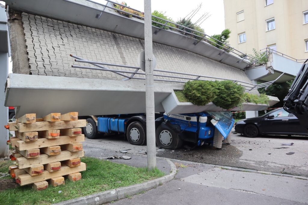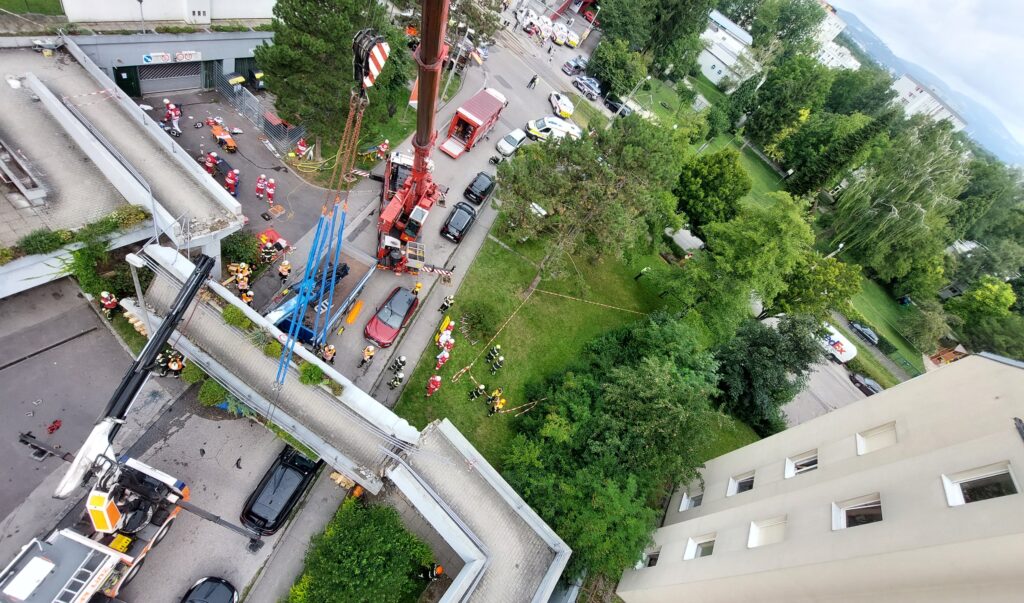 Nach dem ein LKW mit Ladekran eine Fußgängerbrücke touchierte, wurden Fahrer und Beifahrer im Führerhaus durch ein herabgestürztes, rund 50 Tonnen schweres Brückenelement eingeklemmt. Nach einer stundenlangen Rettungsaktion mit hohem Technikeinsatz und dem Hinzuziehen eines externen Schwerkrans konnten die beiden Personen befreit und bei Bewusstsein dem Rettungsdienst übergeben werden. Am 16.07.2025 um 09:13 Uhr wurde die Berufsfeuerwehr Linz über diesen LKW-Unfall in die Gabesstraße im Linzer Stadtteil Auwiesen verständigt. Der Disponent der Nachrichtenzentrale alarmierte den erweiterten technischen Zug der Hauptfeuerwache (Berufsfeuerwehr), sowie die Freiwillige Feuerwehr Ebelsberg.