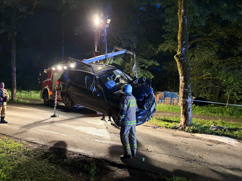 Ein Fahrzeug prallte im Bereich beim Eisschützenverein gegen einen Baum. Eine Person wurde verletzt und im Fahrzeug eingeklemmt. Mit den hydraulischen Rettungsgeräten konnte ein Zugang zur Lenkerin geschaffen werden. Die Feuerwehr unterstützte das Rote Kreuz bei der Rettung der verletzten Person.