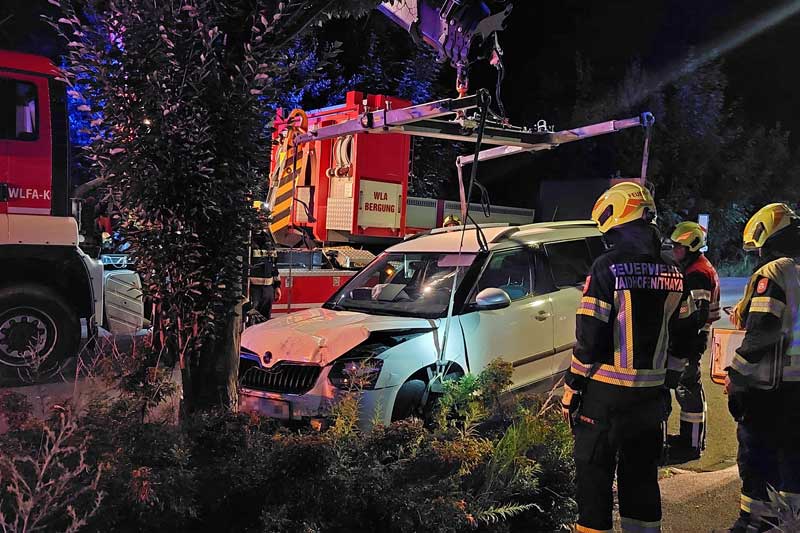 Um 22:37 Uhr wurden die Einsatzkräfte der Freiw. Feuerwehr Waidhofen/Thaya zu einem Verkehrsunfall in der Brunner Straße alarmiert. Ein PKW war gegen einen Baum auf einer Verkehrsinsel gekracht.