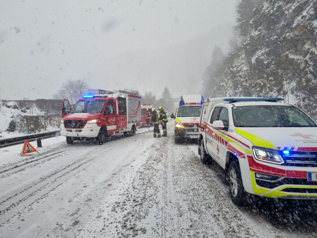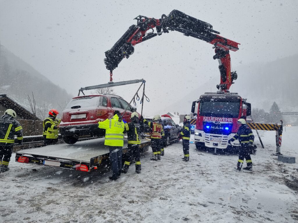 Bad Ischl, 30. Dezember 2025, Dienstagmittag wurden die Feuerwehren Lauffen, Bad Ischl, Pfandl und Bad Goisern zu einem Verkehrsunfall mit Personenrettung nach Lauffen alarmiert.