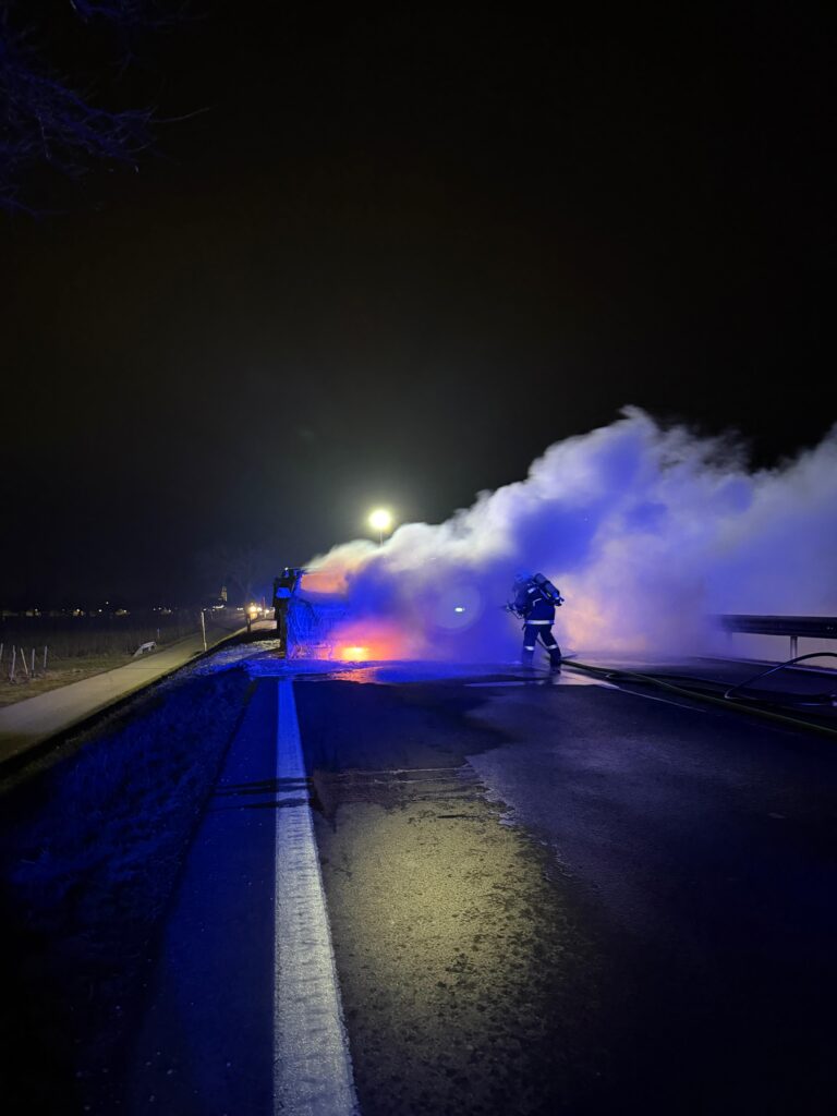 Am Dienstag, dem 10. Februar 2026, wurde die Feuerwehr Purbach um 18:16 Uhr zu einem Fahrzeugbrand auf einer Bundesstraße B50 zwischen Purbach und Breitenbrunn alarmiert. Beim Eintreffen stand ein PKW in Brand – Personen befanden sich zu diesem Zeitpunkt nicht mehr im Fahrzeug. Zufällig befand sich ein Feuerwehrfahrzeug der Feuerwehr Breitenbrunn in der Nähe des Einsatzorts. Noch vor dem Eintreffen der zuständigen Feuerwehr Purbach begannen die Kameraden aus Breitenbrunn mit dem Erstangriff. In weiterer Folge arbeiteten beide Feuerwehren eng zusammen und konnten den Brand rasch unter Kontrolle bringen. Der Einsatz von Löschschaum war notwendig, um die Flammen vollständig zu ersticken.