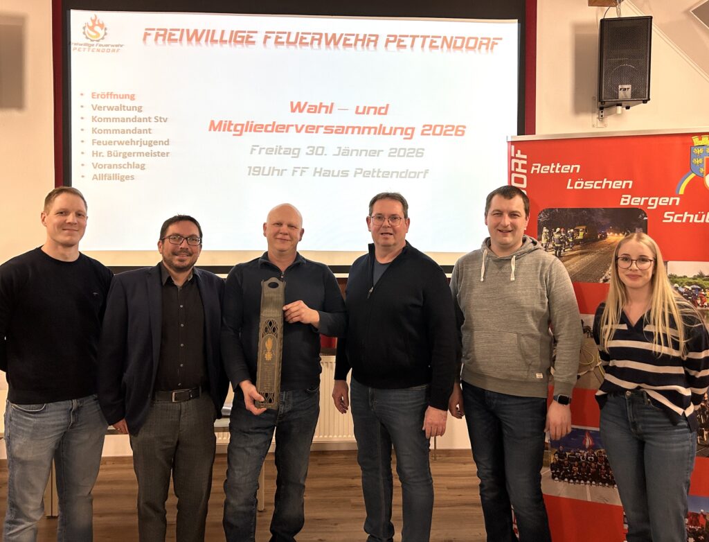 Am Freitag, dem 30. Jänner 2026, fand unsere Mitgliederversammlung mit anschließenden Wahlen statt. Kommandant OBI Thomas Schmatz begrüßte die 37 anwesenden Mitglieder sowie Bürgermeister Andreas Neubauer und Ortsvorsteher Karl Ebermann. Gemeinsam mit dem Kommando und den Chargen haben wir das Jahr 2025 noch einmal im Detail betrachtet. Besonders unsere 140‑Jahr-Feier war ein großes und gelungenes Highlight für die Feuerwehr Pettendorf.
