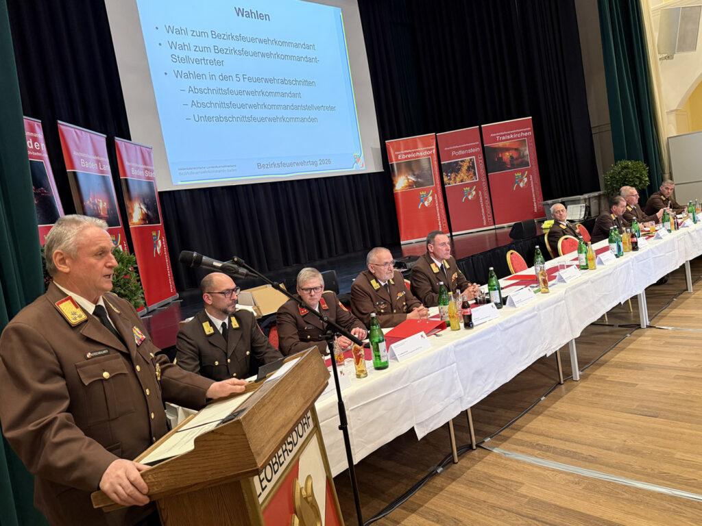 Nachdem im Jänner die Kommando-Wahlen in den 69 Feuerwehren des Bezirk BADEN stattgefunden hatten, war es nun am Freitag den 20. Februar 2026 im Eventcenter Leobersdorf soweit um, im Zuge des diesjährigen Bezirksfeuerwehrtages, auch die neue Führung im Bezirksfeuerwehrkommando und den fünf Abschnitts- und Unterabschnittsfeuerwehrkommanden zu wählen.