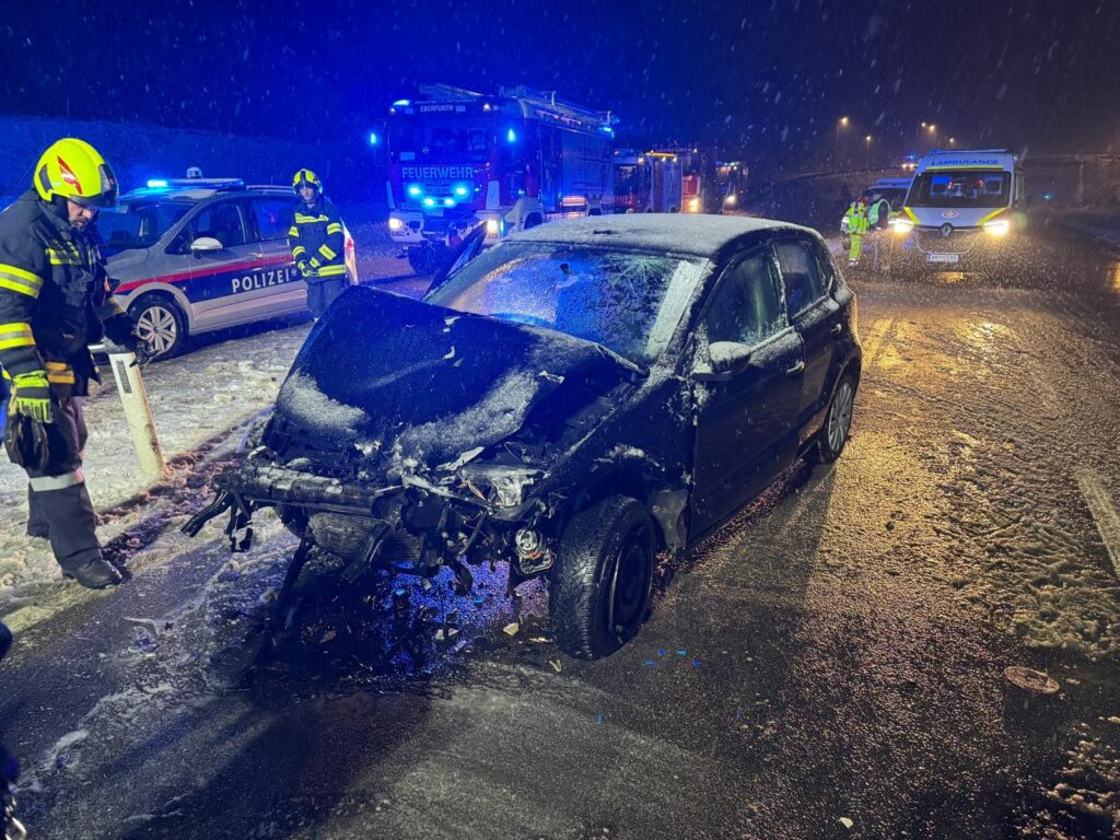 „T2 Verkehrsunfall mit Menschenrettung B17 KM 34,2“ lautete in den Nachtstunden de 19.02.2026 für die Feuerwehren Haschendorf, Eggendorf, Ebenfurth. Ein in Richtung Wiener Neustadt kommender PKW kam aus unbekannter Ursache, im dichten Schneefall, in den Gegenverkehr und touchierte frontal mit einem in Gegenrichtung fahrenden Fahrzeug. Bei diesem Zusammenstoß wurde 1 weiteres Fahrzeug erheblich und 2 Fahrzeuge leicht beschädigt.