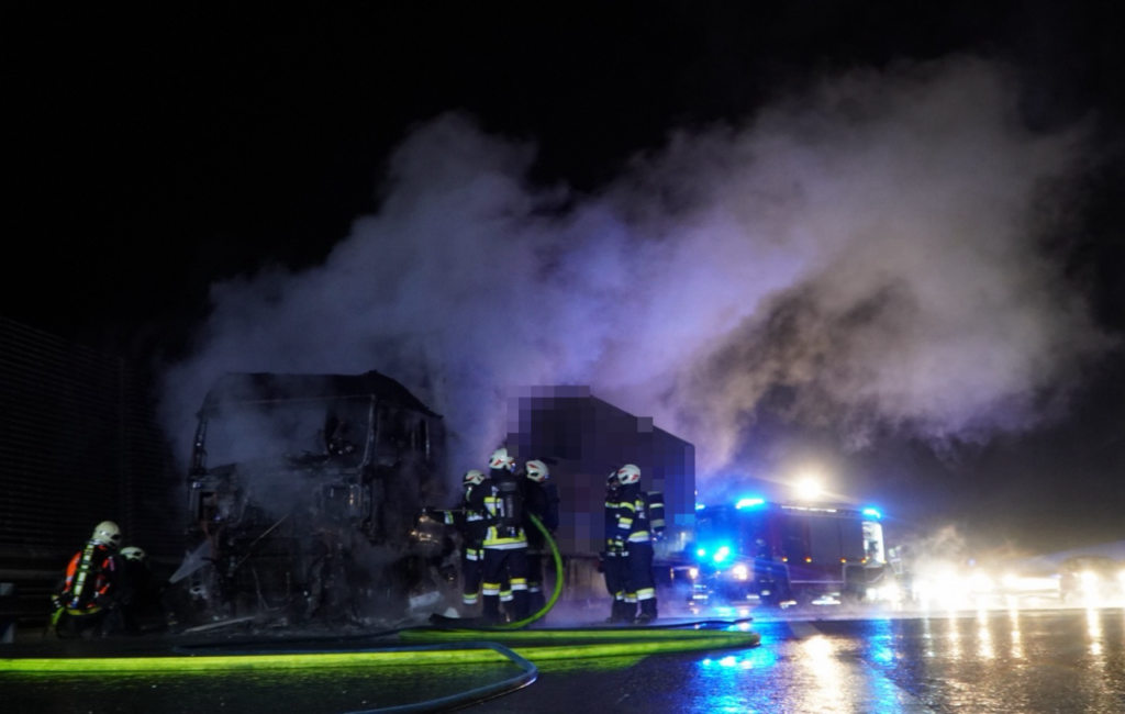 doku NÖ: Am 14.2.2026 kurz vor 18:45 wurden die Feuerwehren Eichgraben und Altlengbach zu einem LKW Brand auf die A1 Westautobahn bei Kilometer 38.5 mit der Info: LKW in Vollbrand alarmiert. Am Einsatzort angekommen wurde umgehend ein Löschangriff gestartet. Die nachrückenden Einsatzkräfte der Feuerwehr stellten eine Wasserversorgung sicher um die Löscharbeiten zu unterstützen. Die Löscharbeiten stellten sich als äußerst schwierig dar, denn der brennende Sattelzug war vollbeladen mit Apfelpalletten. Der Einsatzleiter entschied mittels Löschschaum den Sattelzug zu „Fluten“. Während der Löscharbeiten sicherte die Polizei sowie Asfinag die Unfallstelle ab. Ein RTW des Samariterbundes Altlengbach sowie der Bezirkseinsatzleiter vom Roten Kreuz standen ebenso zur Unterstützung im Einsatz.