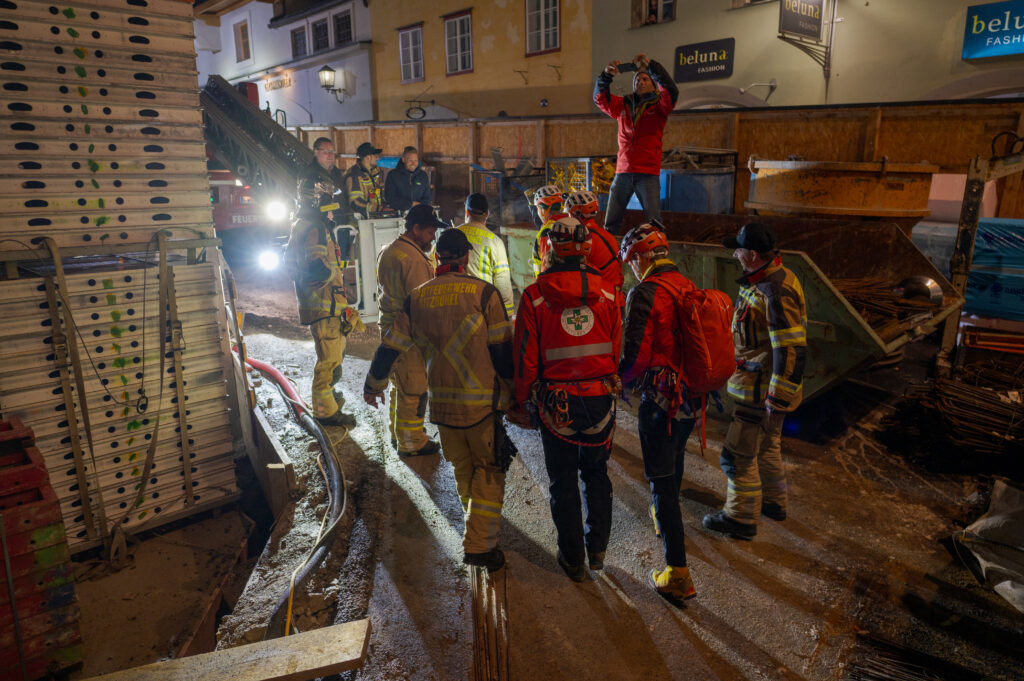 Am Dienstagabend fand im Gerätehaus eine Fortbildungsveranstaltung für die Führungskräfte der Stadtfeuerwehr Kitzbühel in diesem Jahr statt. Einmal im Monat treffen sich die Einsatzleiter zur Vorbereitung auf den Einsatzdienst.Der Abend stand diesmal ganz im Zeichen der Zusammenarbeit mit der Bergrettung Kitzbühel. Übungsannahme war ein Notfall auf einer Baustelle in der Kitzbüheler Innenstadt beim zukünftigen Hotel „Zur Tenne“. Eine Person befand sich dabei in einer misslichen Lage auf einem rund 50 Meter hohen Baukran. Nach einer gemeinsamen Vorbesprechung mit den Verantwortlichen der Baustelle, der Bauleitung sowie den Einsatzorganisationen wurde die Übung gestartet. Die Bergrettung stieg über den Kran zum Verunfallten auf, während die Drehleiter der Feuerwehr unterstützend beim Materialtransport eingesetzt wurde. Aufgrund der begrenzten Reichweite der Drehleiter – rund 30 Meter – erfolgte der restliche Transport des Materials mittels Seilklemme. Die Rettung und der anschließende Ablass der Person wurden mit moderner Mikro-Bergetechnik durchgeführt, die mittlerweile zum Standard der Bergrettung Tirol zählt.