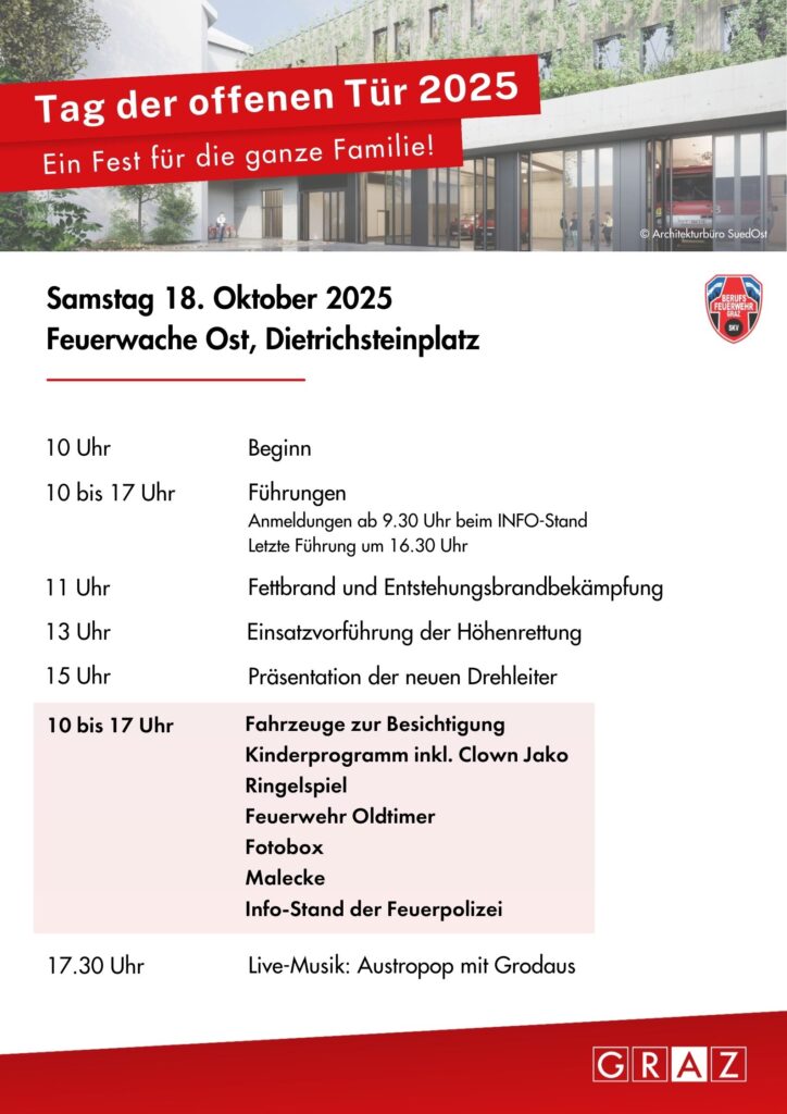 Am Samstag, den 18. Oktober 2025 findet der Tag der offenen Tür der Berufsfeuerwehr Graz statt. Für uns wird das jedenfalls ein besonderer Tag werden.