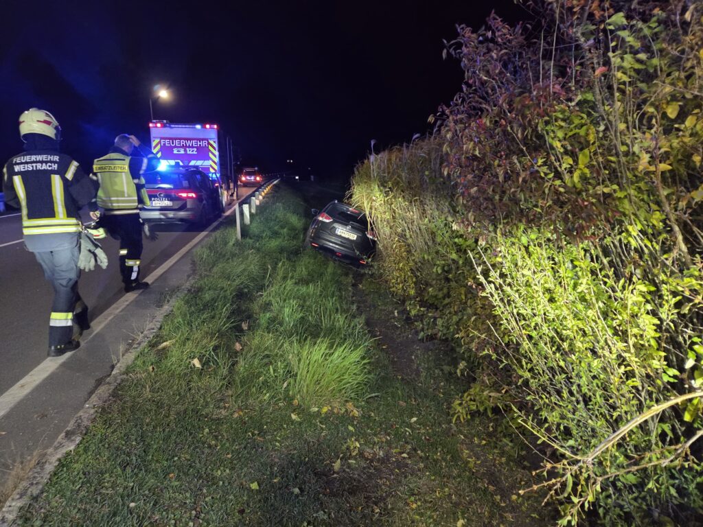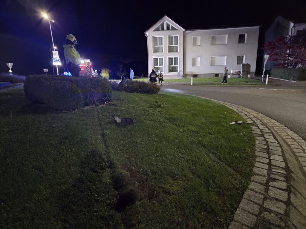 Am Abend des 26.10.2025 wurde die FF Weistrach zu einem PKW im Graben auf die LH 85 alarmiert. Bei der Lageerkundung stellte sich heraus, dass ein Lenker geradeaus über den Weistracher Kreisverkehr fuhr und rechts der Leitschiene zum Stillstand kam. Die Florianis leuchteten die Unfallstelle aus und reinigten die Fahrbahn. Zum Glück überfuhr der Lenker lediglich die Büsche und Verkehrsschilder und nicht die in der Mitte befindliche Steinskulptur.