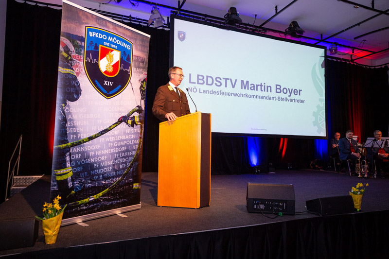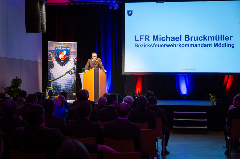 Beim 154. Bezirksfeuerwehrtag in Brunn am Gebirge konnten Bezirksfeuerwehrkommandant Michael Bruckmüller und sein Stellvertreter Christian Giwiser am 27. März 2026 rund 200 Feuerwehrmitglieder sowie zahlreiche Ehrengäste begrüßen, darunter Bürgermeister Andreas Linhart, Abgeordnete zum NÖ Landtag Marlene Zeidler-Beck sowie Landesfeuerwehrkommandant-Stellvertreter Martin Boyer.Im Rahmen der Veranstaltung präsentierte der Leiter des Bezirksverwaltungsdienstes Markus Friedl den Bericht über das vergangene Jahr und gab einen Überblick über Einsätze, Tätigkeiten und Entwicklungen im Feuerwehrbezirk Mödling.