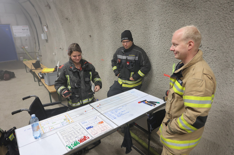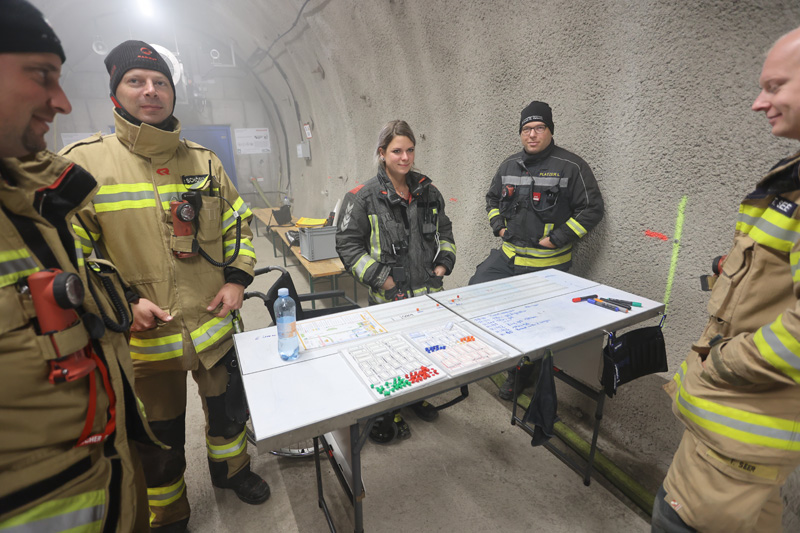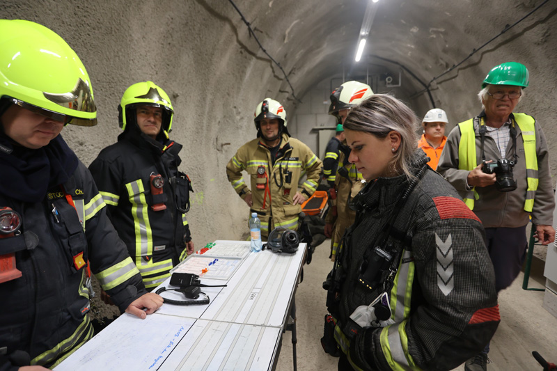Das Tunnel-Trainingszentrum (TTZ) des Österreichischen Bundesfeuerwehrverbandes (ÖBFV) am steirischen Erzberg bietet Ausbildung unter realen Bedingungen! Bei einem Pressetermin konnte man gestern die Einrichtung kennenlernen! In exzellenten Nachbauten von Straßen- und Bahntunnels kann mit Echtfeuer und Nebel geübt werden. Jeder Handgriff ist realistisch – und ist der Abschluss der Ausbildung der Tunnelportalfeuerwehren in ganz Österrech! FPRÄS Robert Mayer,MSc, LBD Reinhart Leichtfreid, BFR Ing. Klaus Tschabuschnig und Prof. Robert Galler (Montanuni) informierten. Mehr demnächst!