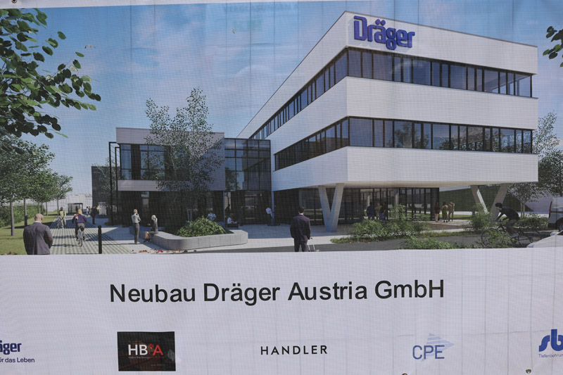Der künftige 4.500 qm große Komplex mit Hauptgebäude, direkt angeschlossenem Logistikbereich und einem kleinen Nebengebäude wird im Juni 2027 bezugsfertig sein. In dem Neubau können die rund 200 Mitarbeiter der 1972 gegründeten Dräger Austria GmbH helle, offene Büros wiederfinden. Diese sind zu rund 60 Prozent nach dem „New Office“-Konzept mit Desk-Sharing-Arbeitsplätzen ausgestattet. Dem stetig wachsenden Kundenbedarf an Medizin- und Sicherheitstechnik in Österreich begegnet Dräger zudem mit der Ausweitung seines Service- und Schulungsangebots.