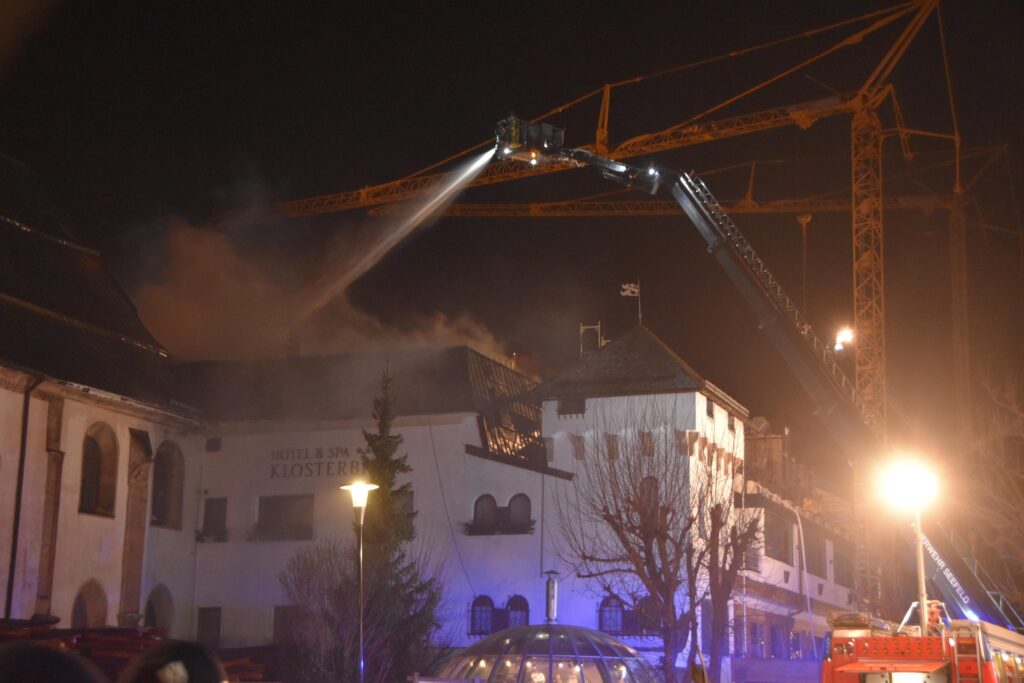 Der Dachstuhlbrand am bekannten Hotel „Klosterbräu“ führte am Montagabend zu einem Großeinsatz. Am 13. April 2026 wurde um 19:05 Uhr ein Großaufgebot der Einsatzkräfte zu einem Brand im Bereich des Dorfzentrums in Seefeld in Tirol alarmiert. Das Einsatzstichwort lautete „Brand Gastronomie“. Der ORF berichtet: „In dem zum Zeitpunkt des Brandausbruchs geschlossenen Beherbergungsbetrieb fanden Bauarbeiten statt. Ob der Brand damit zusammenhing, war zunächst offen.“