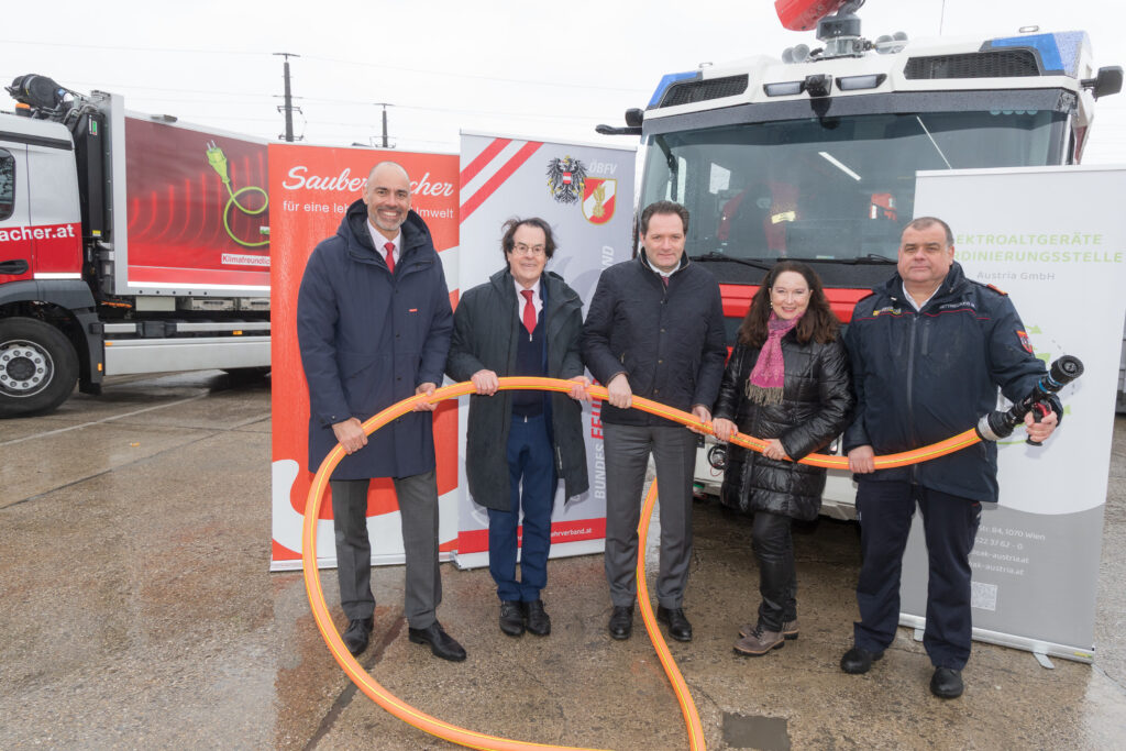 Anlässlich des „Tages der Batterie“ (18.2.) luden die Elektroaltgeräte Koordinierungsstelle (EAK), das Bundesministerium für Land- und Forstwirtschaft, Klima- und Umweltschutz, Regionen und Wasserwirtschaft (BMLUK) sowie der Österreichische Bundesfeuerwehrverband zu einem Medientermin der besonderen Art: Brände in Abfallanlagen, insbesondere verursacht durch falsch entsorgte Lithium-Batterien, stellen für Feuerwehr und Einsatzorganisationen eine enorme Herausforderung dar. Ein Live-Experiment des Bundesfeuerwehrverbandes hat eindrucksvoll gezeigt, wie schnell sich große Abfallmengen entzünden und wie langwierig sowie aufwendig die Bekämpfung solcher Brände sein kann. Neben dem hohen personellen und technischen Aufwand sind vor allem die Luftbelastung durch Schadstoffe und die Entsorgung des kontaminierten Löschwassers problematisch. Das Löschwasser muss sorgfältig aufgefangen und aufwendig entsorgt werden, um Umweltschäden zu vermeiden.