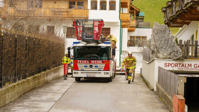 Am 11.04.2026 um 10:20 Uhr wurde die Feuerwehr Gerlos im Rahmen einer Übung zu einem Brandmeldealarm beim Hotel Sportalm alarmiert. Bereits beim Eintreffen des Einsatzleiters, Kommandant Patrick Rieder, bestätigte die Besitzerin des Hotels einen Brand im Gebäude.