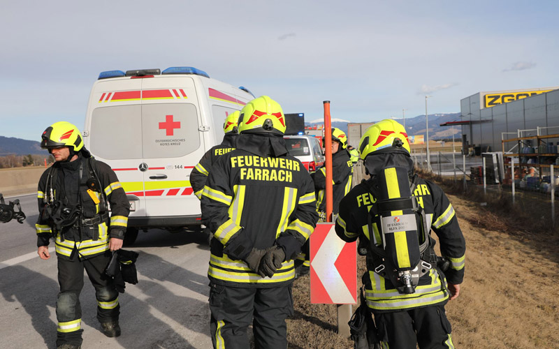 Aufgrund dieser Meldung rückten die Feuerwehren Aichdorf, Farrach, Judenburg und Knittelfeld aus. Da anfänglich nicht bekannt war um welchen Stoff es sich handelt der bei dem 40 Tonne LKW austritt wurden vorsorglich die CSA Vollkörperschutzanzüge in Bereitschaft gebracht um im Fall des Falles die Einsatzstelle ungehindert betreten zu könnten.
