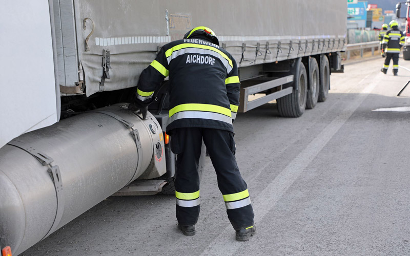 Nach dem Erkunden der Lage durch den Einsatzleiter Abschnittsbrandinspektor Franz Winkler konnte rasch Entwarnung gegeben werden. Bei dem in Fahrtrichtung Wien fahrenden, mit Flüssiggas betriebenen LKW, trat während der Fahrt eine erhebliche Menge dieses Treibstoffes aus.