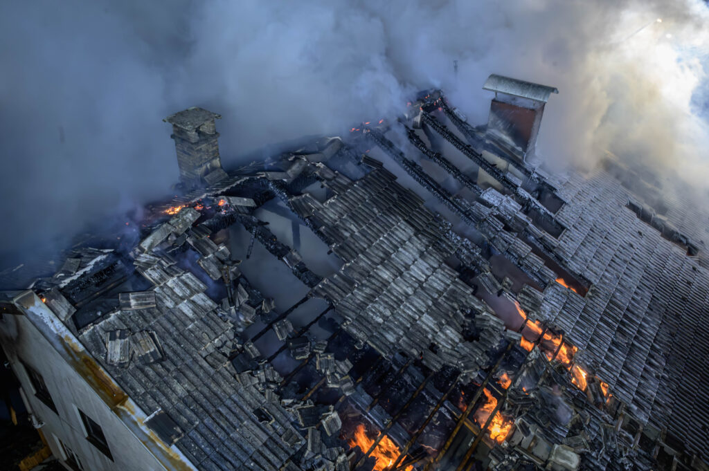 Derzeit dauern die umfangreichen Nachlöscharbeiten noch an, um letzte Glutnester abzulöschen und ein erneutes Aufflammen zu verhindern.