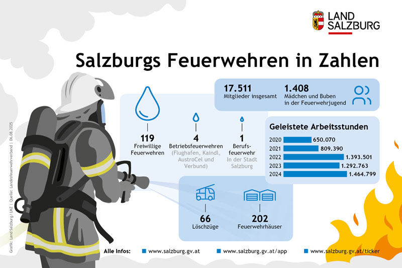 Landesfeuerwehrkommandant Günter Trinker: „Die Salzburger Feuerwehren mit ihren rund 17.500 Mitgliedern sind ein unverzichtbarer und wichtiger Bestandteil des Sicherheitsnetzwerkes im Bundesland Salzburg. Die rund 16.500 Einsätze mit rund 1,5 Millionen geleisteten Stunden im Jahr 2024 sind ein eindrucksvoller Beweis der Leistungsstärke der Salzburger Feuerwehren. Die Gemeinden und der Landesfeuerwehrverband Salzburg sorgen gemeinsam mit dem Land Salzburg dafür, die bestmöglichen Rahmenbedingungen für die großteils ehrenamtlichen Mitglieder zu schaffen, damit sie die an sie herangetragenen Aufgaben erledigen können.“