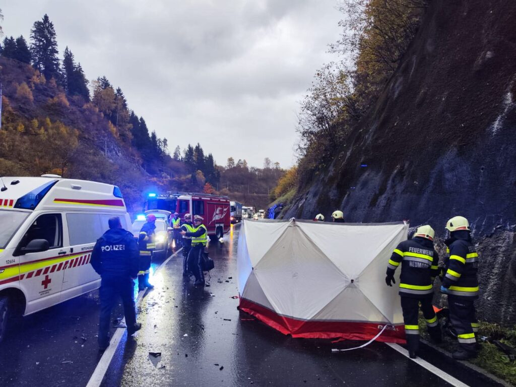 Nach ersten Informationen war der Motorradlenker auf regennasser Fahrbahn ins Schleudern geraten und prallte in weiterer Folge frontal mit einem entgegenkommenden Fahrzeug zusammen. Der Motorradfahrer wurde dabei über das Auto geschleudert und blieb schwer verletzt auf der Fahrbahn liegen. Trotz sofort eingeleiteter Erste-Hilfe-Maßnahmen durch eine zufällig anwesende Ärztin und den alarmierten Notarzt konnte dem 47-jährigen Mann leider nicht mehr geholfen werden.