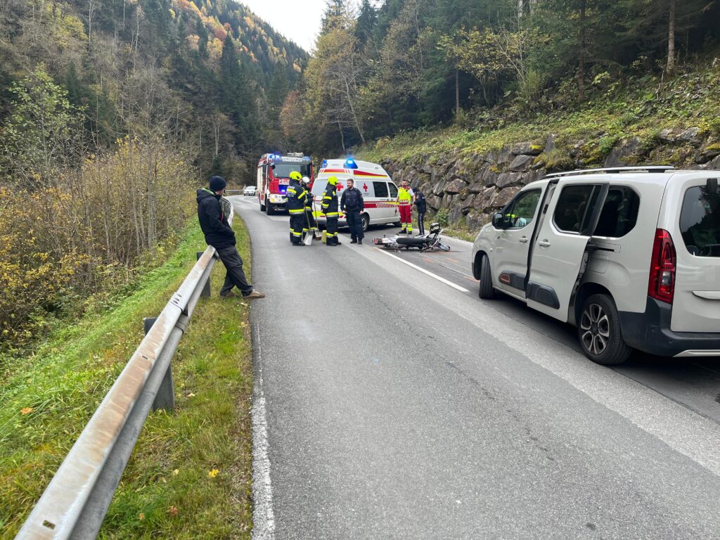 FF Donnersbach 25.10.2025 16:00 Uhr: Wieder Sirenenalarm für die Feuerwehr Donnersbach. „Verkehrsunfall mit Motorrad auf der B75 Richtung Donnersbachwald“ lautete die Einsatzmeldung.