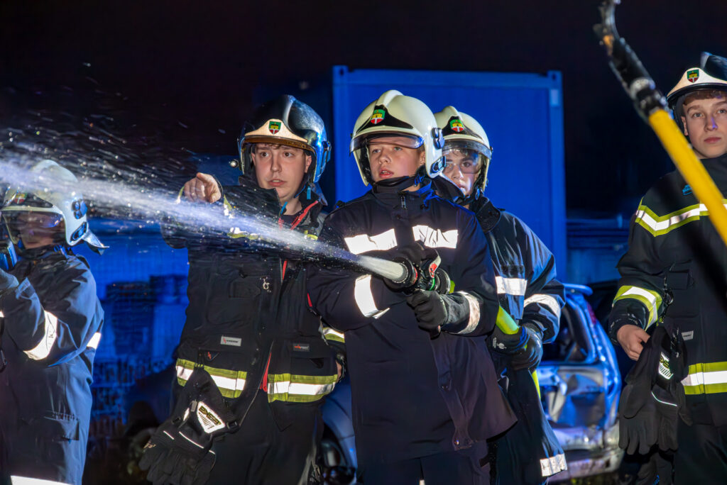 In der Nacht wurden die Jugendlichen zu einer Brandmeldeauslösung im Feuerwehrhaus geweckt, ehe der nächste Tag mit einer Unterrichtseinheit zum Thema Menschenrettung aus einem PKW begann. Dabei wurde den Jugendlichen das Vorgehen bei einer Personenrettung aus einem Fahrzeug gezeigt, sowie verschiedene Methoden und Schnitttechniken mit dem hydraulischen Rettungsgerät praktisch angewendet. Als letzter Einsatz musste eine hilflose Person aus einem Bachbett gerettet werden. Mithilfe der Teleskopmastbühne wurde eine Schleifkorbtrage abgelassen, mit der die verunfallte Person schonend in Sicherheit gebracht wurde.
