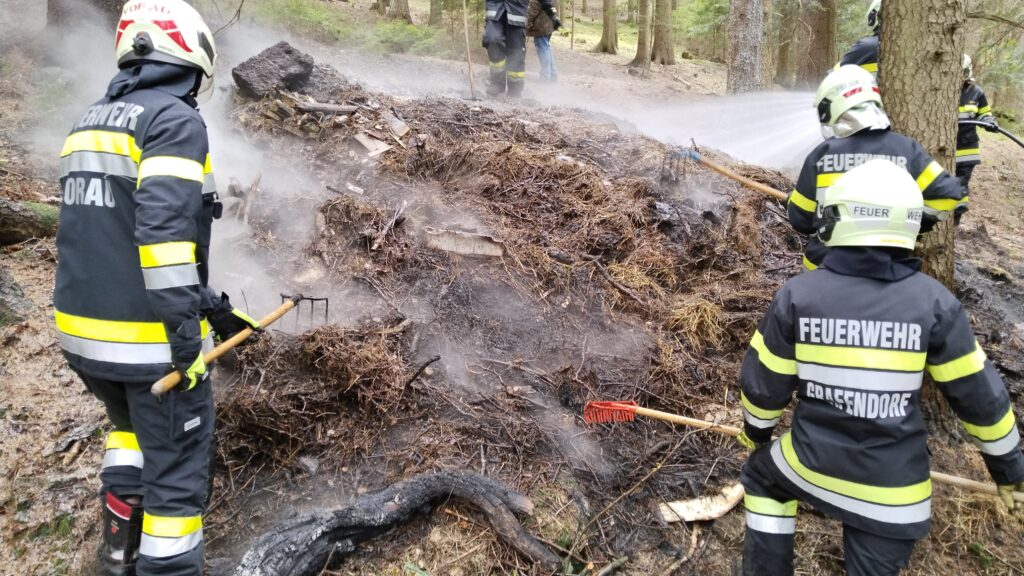 Aufgrund der Anfahrtsdauer der umliegenden Feuerwehren und dem Rauch der bereits auf der Anfahrt gesichtet wurde, veranlasste der Einsatzleiter vorsorglich eine Nachalarmierung der Feuerwehren Vorau und Lafnitz. Am Einsatzort zeigte sich, dass es sich um einen Kleinbrand handelte, der sich noch auf einen kleinen Umkreis vom Ausgangsort begrenzte.