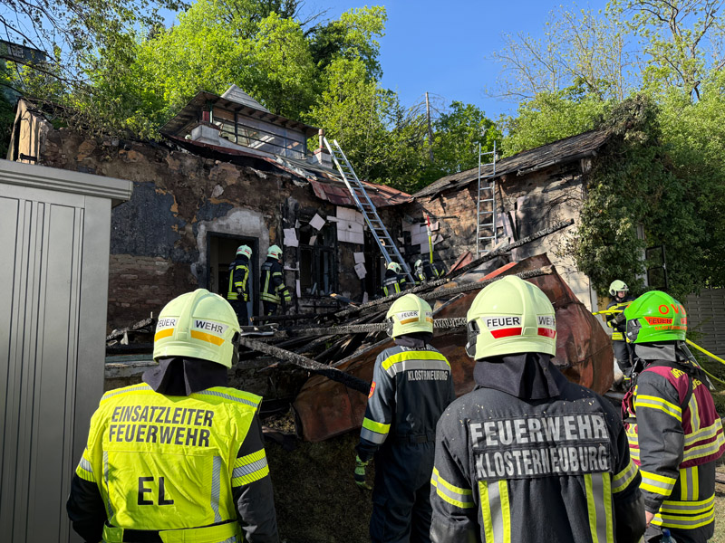 Am 26.April um 05:54 Uhr wurden beide Wachen der Feuerwehr Klosterneuburg sowie die Feuerwehr Kierling gemeinsam mit dem Roten Kreuz und der Polizei zu einem Gebäudebrand alarmiert. Beim Eintreffen an der Einsatzstelle stand ein Teil des Wohnhauses bereits in Vollbrand. Mehrere Atemschutztrupps begangen unverzüglich mit der Brandbekämpfung von außen. Auch von innen musste der Brand durch mehrere Trupps bekämpft werden. Im Anschluss musste das Dach geöffnet werden, um alle Brandstellen zu bekämpfen. Um 09:15 Uhr konnte durch den Einsatzleiter der Feuerwehr Klosterneuburg ,,Brand aus“ gemeldet werden.