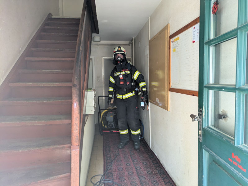 Die Räumlichkeiten wurden mittels Wärmebildkamera kontrolliert und anschließend durch einen Druckbelüfter entraucht.